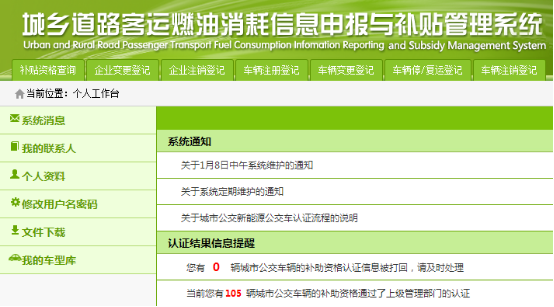 1月初,2015年城鄉道路客運燃油消耗信息申報及補貼管理系統已開(kāi)網(wǎng)。交通局通知要求,各企業(yè)在1月20日前完成運營(yíng)車(chē)輛信息注冊及資格審查工作,以便取得補助資格。
