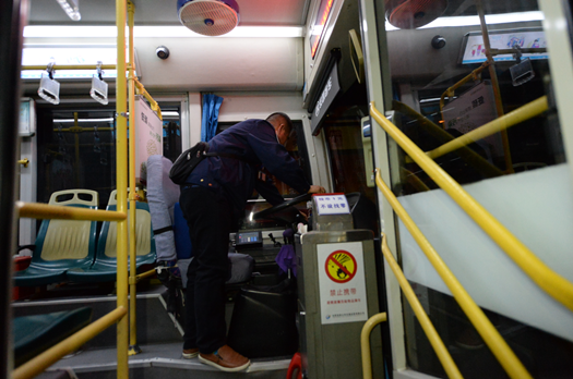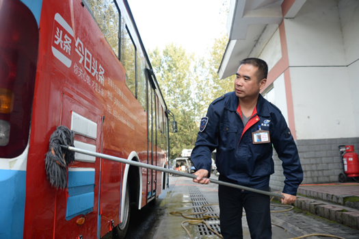 他不思疲憊地清理著(zhù)車(chē)內外的衛生,他說(shuō):“車(chē)子干凈些、清爽些,乘客的乘車(chē)心情也會(huì )更好”。若遇到不是熟悉道路的乘客,他會(huì )提早提醒乘客下車(chē),熱情地為乘客指路;若遇到行動(dòng)不便的乘客,他會(huì )盡力為他們安排座位。