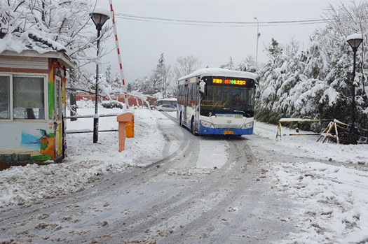 為了應對入冬來(lái)的首場(chǎng)降雪,高新公交公司提前做好冰雪天氣下的公交運營(yíng)服務(wù)工作,為市民提供良好的出行服務(wù)。高新公交公司安排運營(yíng)管理部工作人員趕在各線(xiàn)路出車(chē)前勘測路況及時(shí)掌握路面實(shí)時(shí)現況確保公交車(chē)輛安全運營(yíng)。并且做好駕駛員的安全叮囑工作,千方百計確保車(chē)輛運行平穩,保證乘客安全;要求駕駛員全部提前到崗認真做好發(fā)車(chē)前的各項準備工作,車(chē)輛提前預熱,逐輛檢查車(chē)況,檢查安全部件和剎車(chē)性能杜絕病車(chē)上路,使營(yíng)運車(chē)輛保持良好的技術(shù)狀況。同時(shí)高新公交公司行政人員以雪為令,全部上崗下線(xiàn),負責清掃公交站點(diǎn)積雪,把工業(yè)用鹽撒在路線(xiàn)易滑的坡道上,為公交車(chē)行駛創(chuàng )造良好的運營(yíng)條件。