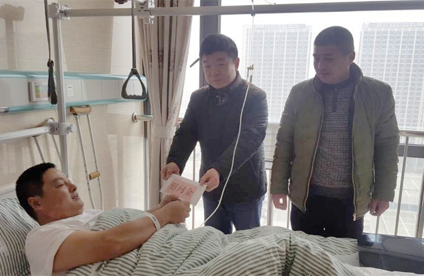 1月3日上午,高新公交工會(huì )人員來(lái)到安醫高新分院,探望住院的老員工王姚東。