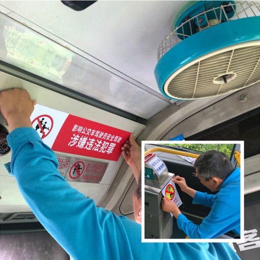 檢查中,發(fā)現車(chē)內主動(dòng)讓座標識、投幣兩元標識、禁止攜帶易燃易爆品標識、請勿與駕駛員攀談等警示、宣傳標識標語(yǔ)存在不同程度破損,嚴重影響宣傳、警示效果。高新公交根據檢查結果,統一安排制作。制作完成后,又安排專(zhuān)人更換全部破損及卷邊畫(huà)面,截止至5月底,發(fā)現的問(wèn)題已全部整改到位,車(chē)內標識已全部達到張貼要求。