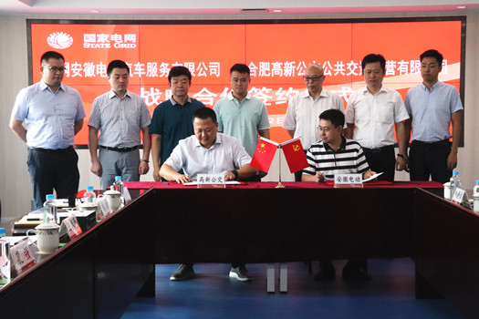 9月2日,公司與國網(wǎng)安徽電動(dòng)汽車(chē)服務(wù)有限公司(以下簡(jiǎn)稱(chēng)“國網(wǎng)安徽電動(dòng)”)就城西橋公交示范站合作項目進(jìn)行會(huì )談并舉行簽約儀式。高新公交總經(jīng)理孔強,副總經(jīng)理王春夏,國網(wǎng)安徽電動(dòng)公司總經(jīng)理徐方林,副總經(jīng)理周堃等相關(guān)人員參加了會(huì )談和簽約儀式。
