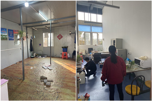 響孔路口站位于高新區響洪甸路與孔雀臺路交口,合肥融捷能源材料有限公司廠(chǎng)區內,原站房是鋼材骨架、夾芯板圍護組建成的活動(dòng)板房,建筑結構簡(jiǎn)單,且地處低洼地帶。為進(jìn)一步完善辦公環(huán)境,高新公交與融捷公司溝通協(xié)商,確定了新站房的位置,安排專(zhuān)業(yè)人員對新站房進(jìn)行檢修,并結合一線(xiàn)人員需求,對水電設施進(jìn)行重新規劃改造、對泛黃的墻面進(jìn)行粉刷,確保了站房?jì)鹊挠盟秒姲踩?/span>