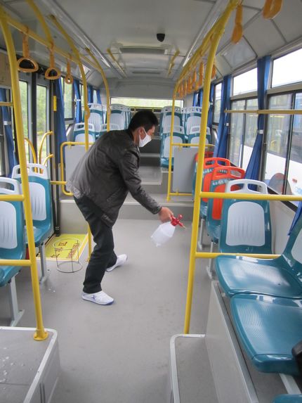 為給廣大市民群眾提供更為優(yōu)質(zhì)的服務(wù)工作,打造高新公交服務(wù)品牌,提升高新區城市公交窗口形象,保障市民的身心健康,按照公司領(lǐng)導的統一部署,從4月9日起,由高新公交綜合管理部組織各部門(mén)員工,配戴防護口罩,手持消毒藥壺在公司停保場(chǎng)及各個(gè)站房調度現場(chǎng),對營(yíng)運車(chē)輛逐臺進(jìn)行消毒,著(zhù)重對每臺公交車(chē)的扶手、護欄、座椅、車(chē)窗玻璃等乘客接觸頻繁的部位和車(chē)門(mén)、座椅角落等日常保潔難以清潔的死角噴灑消毒藥劑,以確保市民出行健康