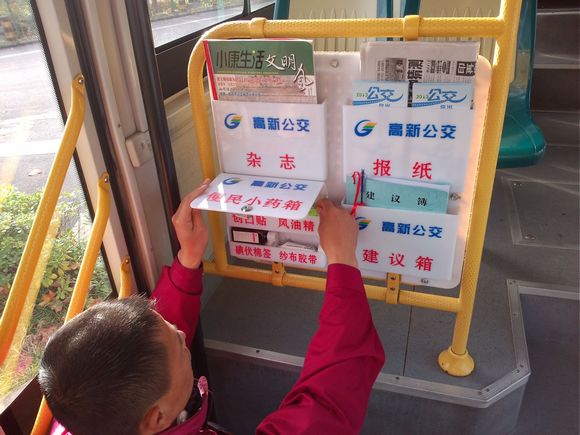 為更人性化服務(wù)廣大乘客,近期,高新公交于中科大班車(chē)試行安放藥箱、閱覽箱等便民服務(wù)措施。