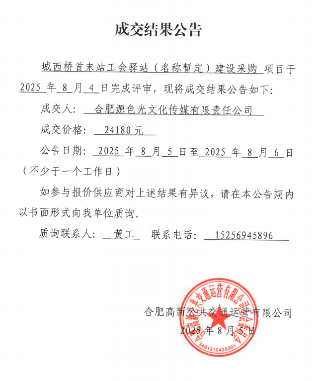 城西橋首末站工會(huì )驛站(名稱(chēng)暫定)建設采購項目采購結果公告